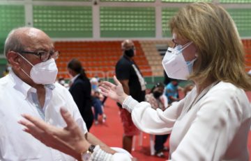 Por último, se trasladó al Pabellón de Combate del Centro Olímpico Juan Pablo Duarte, donde intercambió palabras de solidaridad y júbilo con el señor Mario Guerrero de 97 años de edad, la persona de mayor edad vacunada este día en dicho centro de vacunación.