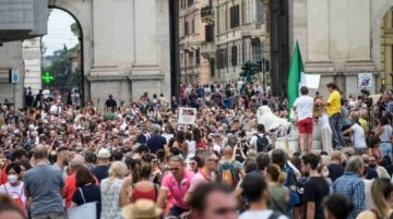 Unas 10.000 personas, según los medios locales, se concentraron en la tarde de este sábado en la romana Plaza del Popolo para protestar contra las restricciones de la pandemia, profiriendo insultos hacia el Gobierno y los periodistas.