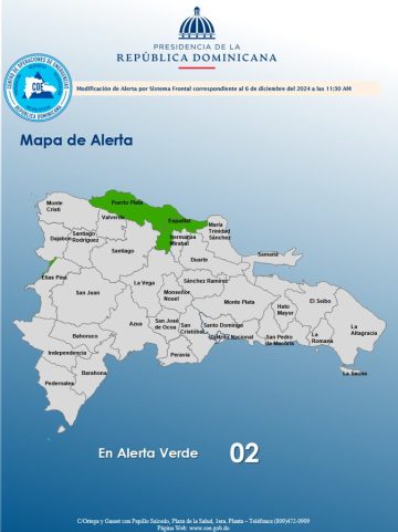 Las provincias en alerta verde son: Puerto Plata y Espaillat.