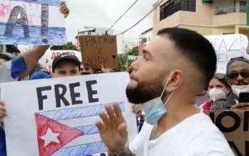 Cubanos residentes en República Dominicana salieron este lunes a las calles en apoyo a las protestas antigubernamentales que se vivieron en su país.