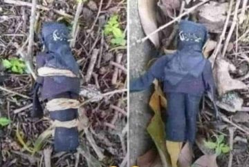 SANTO DOMINGO. -Un muñeco con un mensaje escrito, fue encontrado atado en un monte del país, sin que hasta ahora se haya especificado el lugar exacto.