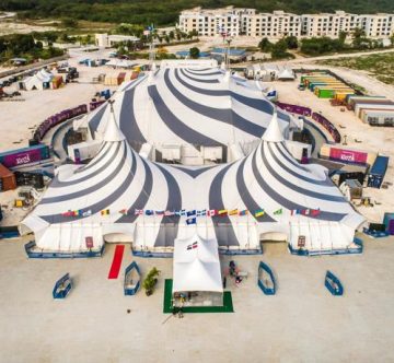 En promedio, la instalación del espacio donde el crew de Cirque trabajará por alrededor de cinco meses, toma nueve días para armarse y tres para ser desmantelado; para ello SD Concerts trajo más de cien furgones de carga hasta Punta Cana.