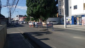 Santiago, RD.-Brigadas de la Corporación del Acueducto y Alcantarillado de Santiago (Coraasan), solucionaron el hundimiento que se produjo en la avenida Núñez de Cáceres esquina Carlos de Lora en el sector Bella Vista al suroeste de la ciudad producto del colapso de un tramo del colector de aguas residuales.