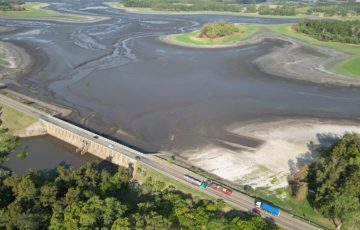 El embalse de Canelón Grande, ubicado unos 61 km al norte de Montevideo en el departamento de Canelones, quedó seco al punto de que se observan las rajaduras en la tierra otrora cubierta por el agua.