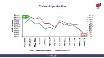 La entidad dijo que de acuerdo a los análisis de coyuntura de su Dirección de Estudios Económicos, en los tres primeros meses de 2021 la cartera improductiva (los créditos con atrasos en sus pagos y en cobranza judicial) presentó una caída interanual de -1.9%.