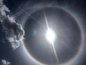 Se trata de un halo solar, el cual se denomina como el efecto óptico en forma de disco alrededor del Sol o la Luna y que presenta un anillo en su circunferencia exterior.