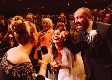 Novia sale de su boda para el concierto de Adele y logra autógrafo en su vestido