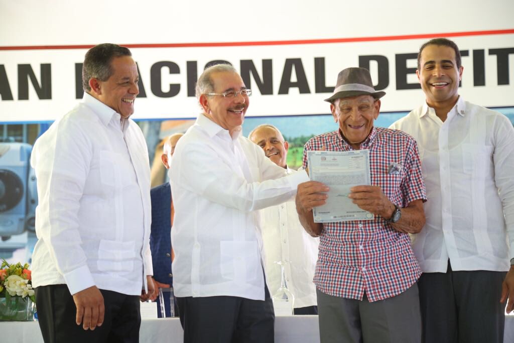 Tenían 55 años esperando esos títulos Palmar de Ocoa, Azua.- El entusiasmo y la alegría reinaron en los habitantes de esta comunidad durante el acto de entrega de manos del presidente de la República Danilo Medina de 839 títulos definitivos de parcelas y solar... Mas »