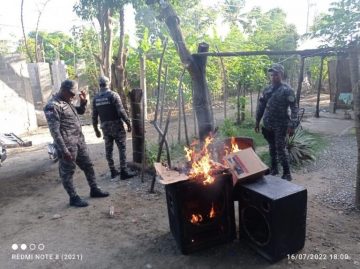 Agentes policiales intervinieron dos casuchas en diferentes sectores del municipio de Haina donde se sospecha vendían drogas, incendiaron sillas y otros efectos que se utilizaban para el negocio y apresaron un hombre al que ocuparon dos porciones de supuesta marihuana.