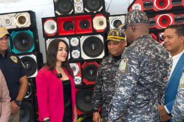 Santo Domingo, RD. – La ministra de Interior y Policía, Faride Raful, entregó a la Procuraduría Especializada de Medio Ambiente, en Santo Domingo Oeste, 225 bocinas incautadas en espacios públicos y centros de expendio de bebidas alcohólicas porque supuestamente alteraban la tranquilidad pública.