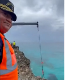 Miembros del Cuerpo de Bomberos de Santo Domingo Este y de la Dirección General de Seguridad de Tránsito y Transporte Terrestre (Digesett) están sacando en estos momentos un camión del mar Caribe, a la altura del kilómetro 18 de la autopista las Américas.