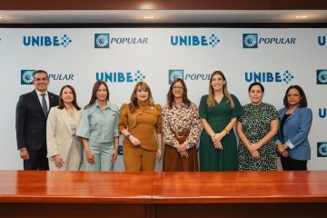 En representación del Popular, también estuvieron presentes en el acto de firma de esta alianza las señoras María Povedano, vicepresidenta ejecutiva de Gestión Humana, Transformación Cultural, y Sistemas y Procesos; María Badía, vicepresidenta del Área de Gestión de Talento y Cultura; el señor Joel García, vicepresidente del Área de Gestión Humana; y la señora Heidy Reyes, gerente de la División Reclutamiento y Selección. Por parte de UNIBE, las señoras Odile Camilo Vincent, rectora; Loraine Amell Bogaert, vicerrectora de Vinculación e Internacionalización; y Marien de Moya, coordinadora de Vinculación.