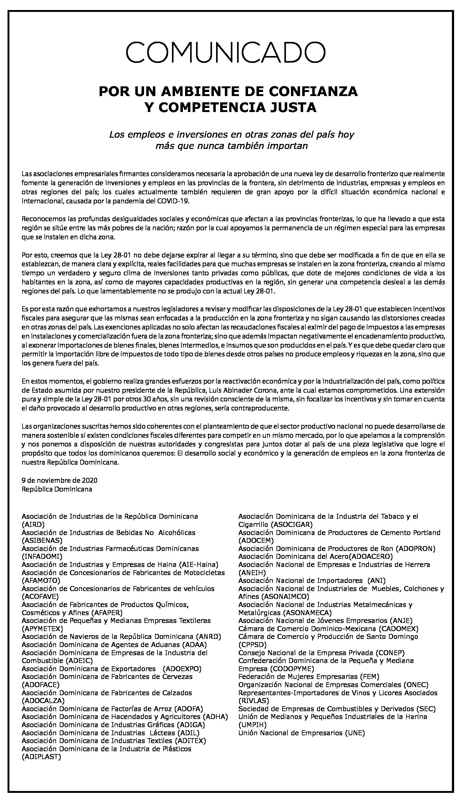 Afirman empleos e inversiones en otras zonas del país hoy más que nunca también importan Las organizaciones del sector empresarial e industrial consideraron necesaria la aprobación de una nueva ley de desarrollo fronterizo que realmente fomente la generaci... Mas »