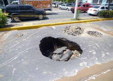 Al momento del hecho no circulaba ningún vehículo. La estructura afectada mantiene cerrado el tramo de unos 200 metros en dirección oeste-este Un enorme socavón se registró este viernes en un tramo de la avenida Las Carreras en el municipio Santiago de los Cab... Mas »