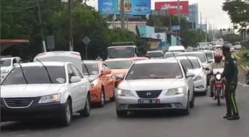 SATIAGO.- Taxistas que laboran por aplicación se manifestaron en contra del toque de queda con una caravana que inicio en la autopista Duarte hasta las hermanas Mirabral de la ciudad de Santiagos de los Caballeros.
