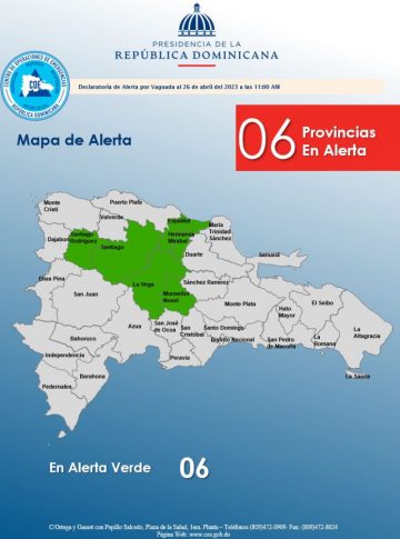Las demarcaciones con la alerta son Espaillat, Santiago Rodríguez, La Vega, Monseñor Nouel, Hermanas Mirabal y Santiago.
