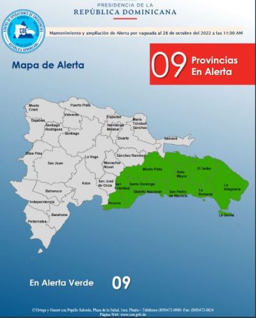 Santo Domingo, RD. – El Centro de Operaciones de Emergencias (COE) elevó a nueve las  provincias en alerta meteorológica debido a una vaguada que se manifiesta en diferentes niveles de la tropósfera.
