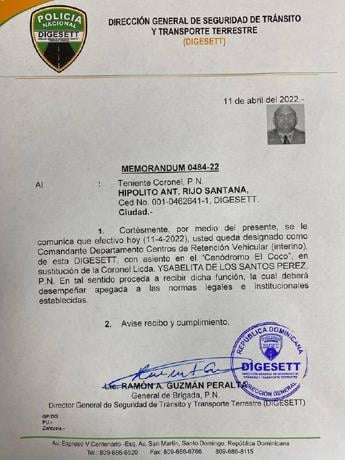 En su lugar el director de la Digesett, Ramón Guzmán, nombró al teniente coronel Hipólito Rijo Santana como comandante interino del departamento del Centro de Retención Vehicular “El Coco”.