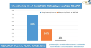 Rep. Dom. – Lo labor que frente al gobierno ha desarrollado el presidente Danilo Medina recibió una alta valoración por los habitantes de las provincias La Vega y Puerto Plata, según los datos de la encuesta SIGMADOS República Dominicana, difundidos por el ministro José Ramón Peralta.