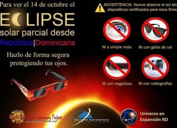 Los dominicanos se mantienen a la expectativa por el eclipse solar que podrán presenciar el próximo sábado 14 de octubre, por lo que la Sociedad Astronómica Dominicana (Astrodom) hace una serie de recomendaciones para observar el fenómeno.