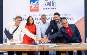 “Hoy el Inposdom y la Sociedad Filatélica ponen en circulación la emisión postal del 50 aniversario de la Adoexpo como reconocimiento por su ardua labor y contribución en el desarrollo y crecimiento económico de la sociedad dominicana dirigida a fomentar la exportación de productos y servicios nacionales”, enfatizó el funcionario.