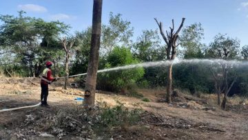 La entidad dice que se trasladó un segundo ejemplar de un samán que estaba localizado donde se levanta la estación 12 del monorriel, al lado del campus de la Pontificia Universidad Católica Madre y Maestra (Pucmm) en Santiago. Este se replantó en el área verde que se encuentra a la orilla del río Yaque del Norte, frente a la estación dos del teleférico.