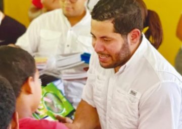 El presidente fundador de la Fundación Acción Solidaria, ingeniero y dirigente comunitario Moisés Cáceres, hizo entrega de 6 mil cuadernos a mil 500 estudiantes de escasos recursos económicos de varios sectores de Santiago.