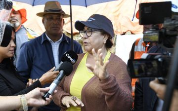 La representante del Poder Ejecutivo, Rosa Santos, supervisó hoy varias zonas, en especial la Avenida Las Carreras, donde ocurrió el derrumbe de una parte del muro de contención.