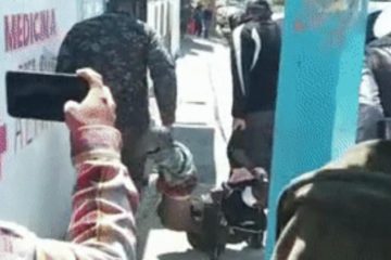 La Policía en Constanza, informó que Pie resultó herido en la pierna izquierda por el raso Enmanuel Rodríguez Almonte, cuando le estaba lanzando machetazos a todo el que se le acercara.