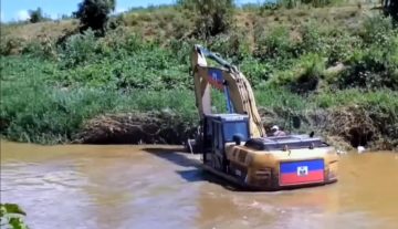 Haitianos buscan represar río masacre con retroexcavadora para desviar agua por canal