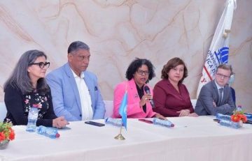 Vásquez Martínez y la viceministra de Seguridad Preventiva en Gobiernos Provinciales, Ángela Jáquez, organizaron una mesa de trabajo con la embajadora en Austria y representante permanente ante las organizaciones internacionales, Laura Faxas; la directora de la Oficina Nacional de Estadísticas (ONE), Miosotis Rivas; la del centro de Excelencia de Unodc e Inegi, Salomé Flores y su adjunto Guillermo Castillo.