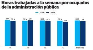 Durante el último trimestre del 2025, los trabajadores públicos laboraron 36.4 horas, lo que implica una reducción de dos horas con relación a igual período del año anterior, cuando la jornada ascendió a 38.4 horas.