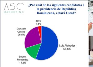 Luis Abinader gana en primera vuelta con 55.6%; Gonzalo 26.5% y Leonel 14.5%, según encuesta ABC Marketing