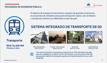 “El caos en el transporte público de la capital dominicana será abordado con una inversión de RD$176,358 millones en los próximos cinco años, con el desarrollo de grandes infraestructuras viales, contenidas en el Programa de Inversión Pública y Gastos Priorizados”, precisó.