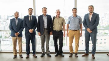 El ministro Bisonó recibió en su despacho al embajador Abu Rukun, al CEO de Elcam Medical, Guli Kohn y al gerente de Cadena de Suministro de Elcam Medical, Eli Tssor, con quienes conversó y destacó la importancia de este proyecto para el fortalecimiento de la industria de dispositivos médicos, para la cual apoyará la especialización de talento humano dominicano.
