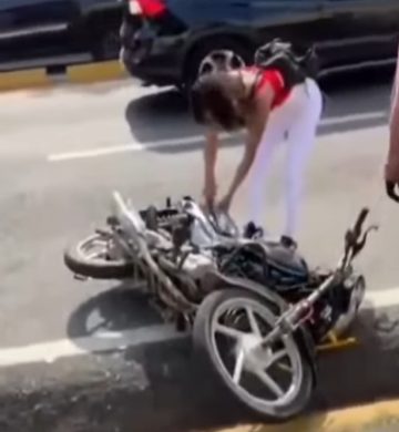Mujer destruye motocicleta por celos en vía pública