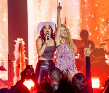 Juntas interpretaron la ranchera y la emoción fue tal que “La Chica Dorada” obsequió su sombrero vaquero rosa a una de sus fanáticas.