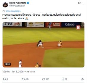 Pelotero Alberto Rodríguez recibe sutura en pómulo izquierdo y está en condiciones estables