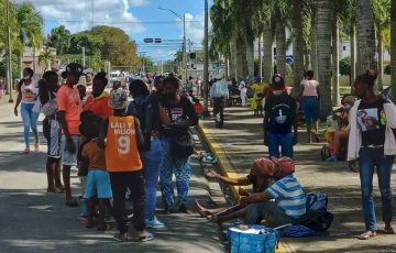 Junto con los peregrinos se encuentran personas que se dan cita en estos días festivos para pedir limosnas a los visitantes de la Virgen de la Altagracia.