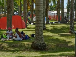 Sin embargo, se puede observar una cantidad de personas que han colocado carpas con lonas, pese a que las autoridades de Salud informaron ayer que los peregrinos no podrán dormir dentro de la basílica.