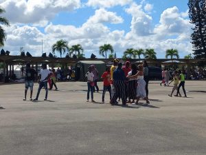 Las personas se encuentran apostadas tanto dentro del templo como en la periferia, pues se dan cita en este lugar a celebrar el Día de la Virgen de la Altagraci