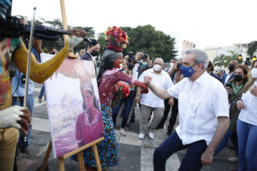 La caminata continuó por la calle El Conde hasta llegar al Parque Colón. En este último tramo se apreciaban artistas plásticos, caricaturistas y músicos, así como decenas de personas que se acercaban para fotografiarse junto al jefe de Estado.