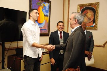 Santo Domingo.- El presidente Luis Abinader recibió este jueves en el Palacio Nacional a Chris Duarte, jugador dominicano de baloncesto profesional que se encuentra en el país para participar, junto a la selección nacional, en el torneo clasificatorio para la Copa Mundial de Baloncesto de 2023.