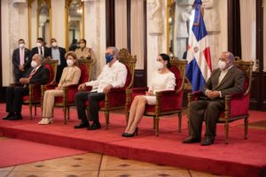 En el acto celebrado en el salón Las Cariátides del Palacio Nacional, el presidente estuvo acompañado de la primera dama, Raquel Arbaje, la vicepresidenta, Raquel Peña y el ministro de Salud Publica; Plutarco Arias, entre otras personalidades.