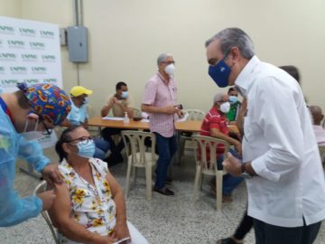 Durante su visita al centro de vacunación ubicado en las instalaciones de la Universidad Nacional Pedro Henríquez Ureña (UNPHU), el mandatario llamó a la población que ya recibió su primera dosis a seguir asistiendo este domingo, para así culminar con las personas del rango de edad previsto.
