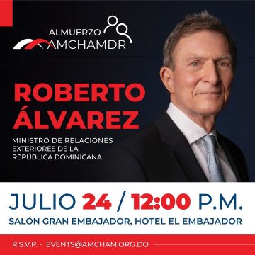 El ministro de Relaciones Exteriores de República Dominicana, Roberto Álvarez, será el orador invitado y huésped de honor del Almuerzo Empresarial de la Cámara Americana de Comercio de la República Dominicana (AMCHAMDR) el miércoles 24 de julio a partir de las 12 del mediodía.
