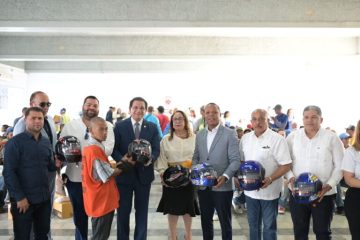 La Casa Senatorial de Santiago junto al Instituto Nacional de Tránsito y Transporte Terrestre (Intrant) y la Dirección General de Seguridad de Tránsito y Transporte Terrestre (Digesett), entregó 300 cascos y protectores a motoristas, durante la actividad celebrada en el Parque Central de Santiago.