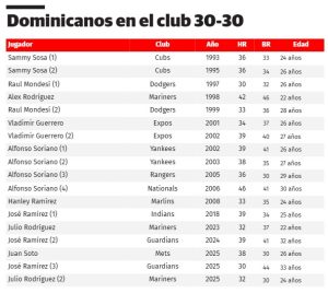 El banilejo consiguió su tercera temporada de 30-30 y se acerca al líder histórico entre los dominicanos, Alfonso Soriano, quien lo logró en cuatro ocasiones (2002, 2004, 2005 y 2006).