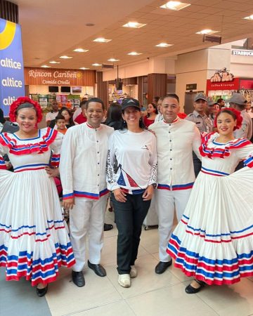 Fue recibida en el Aeropuerto Internacional de las Américas (AILA) a ritmo de tambora y güira a manos del Ballet folklórico del Ministerio de Turismo, y ella respondió con una amplia sonrisa y bailando merengue.