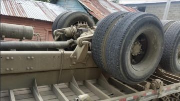 El accidente se registró antes del mediodía de este martes cuando al camión Freightliner, placa L402664, le fallaron los frenos en un tramo escarpado de la carretera de Palmar Grande. El vehículo, propiedad de la Ferretería Espinal, de Santiago, aplastó a los tres hombres al quedar con sus 11 neumáticos hacia arriba.